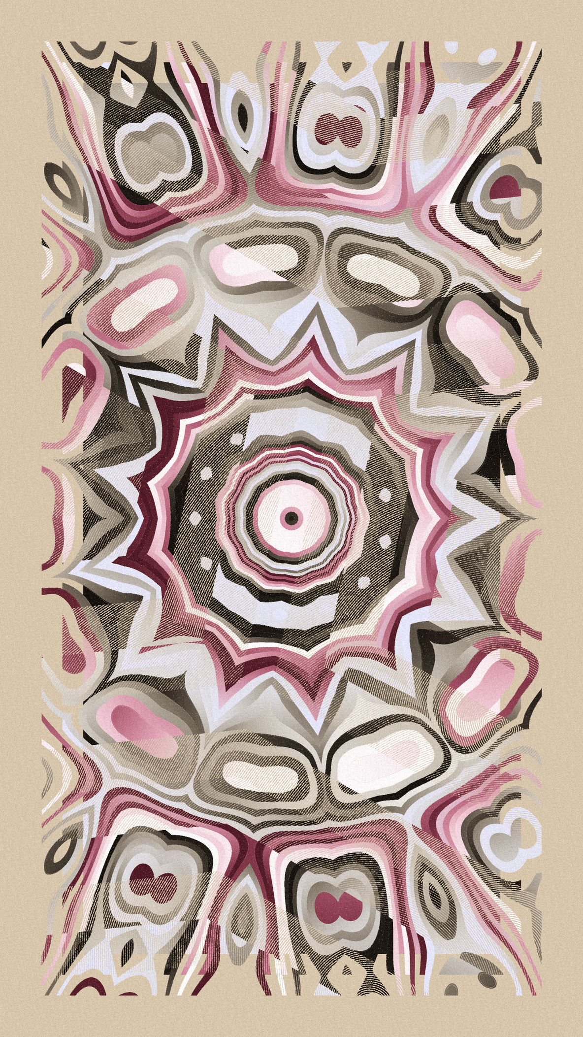 This artwork is built on three layers, each defined by calculated isolines—like topographical lines mapping out geometric forms. Every layer can be tweaked with different parameters (color shifts, thickness adjustments, and line-color changes), enabling a broad range of final results. Depending on the specific settings, some layers may become more visually prominent than others, highlighting the interplay between them.